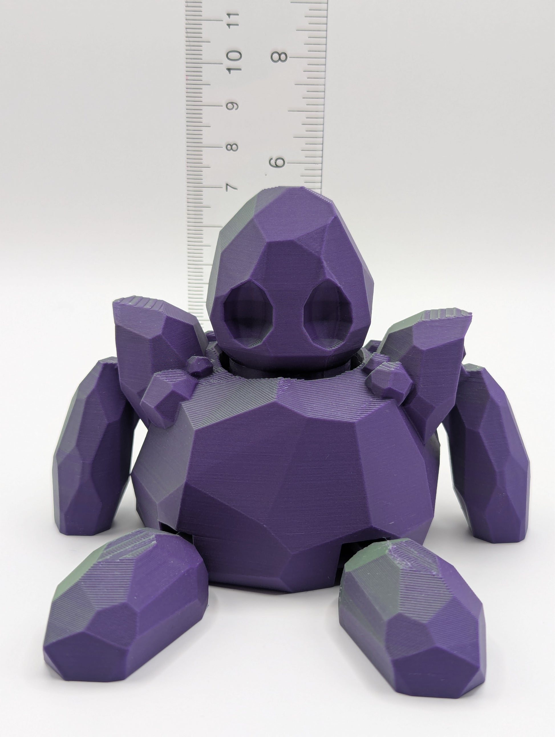 3D printed Golem in color of choice. These golems are just under 3 inches tall and printed out of PLA plastic. (See below for details on PLA)