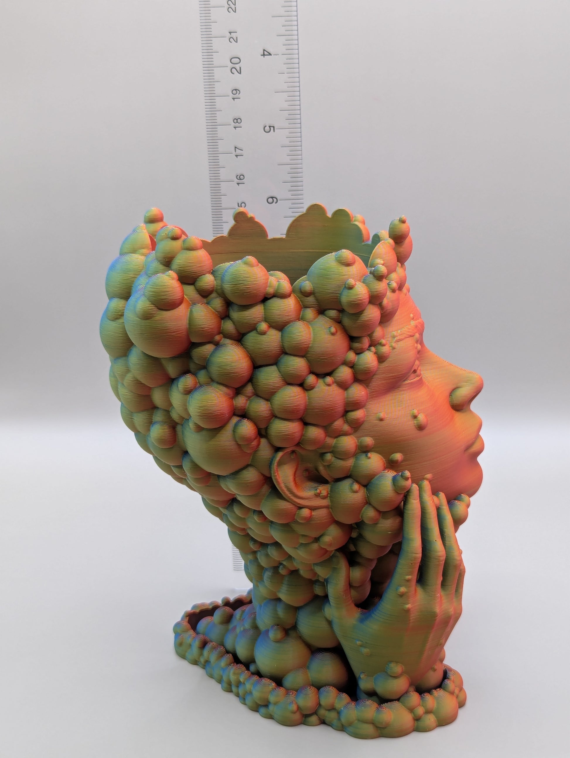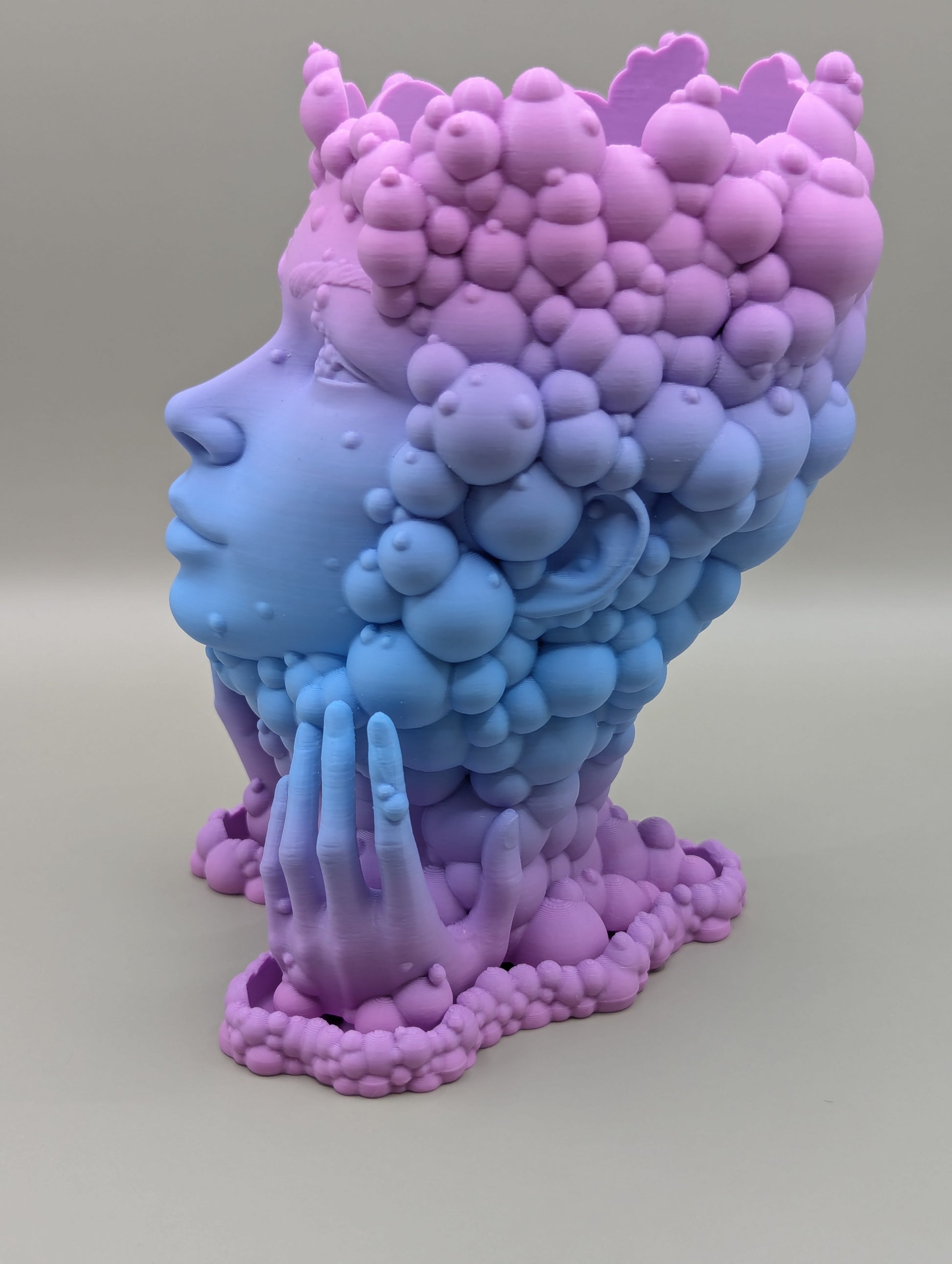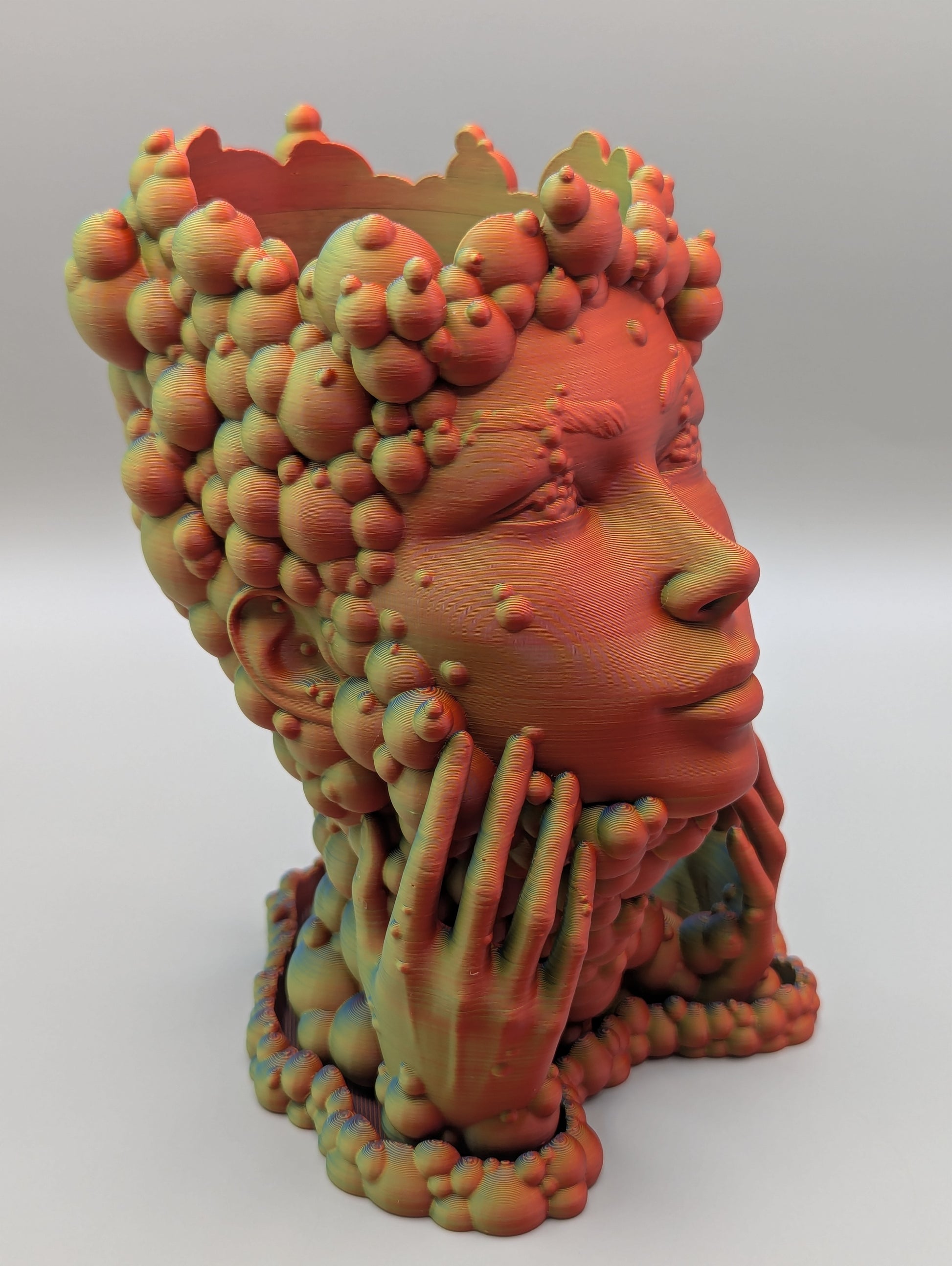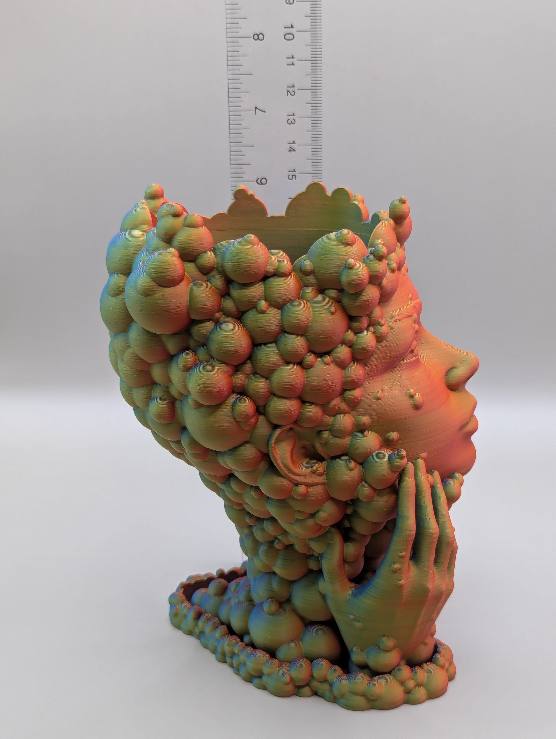 3D printed Planter in color of choice. These ladies are roughly 6 inches tall (15cm) and printed out of PLA plastic. (See below for details on PLA)