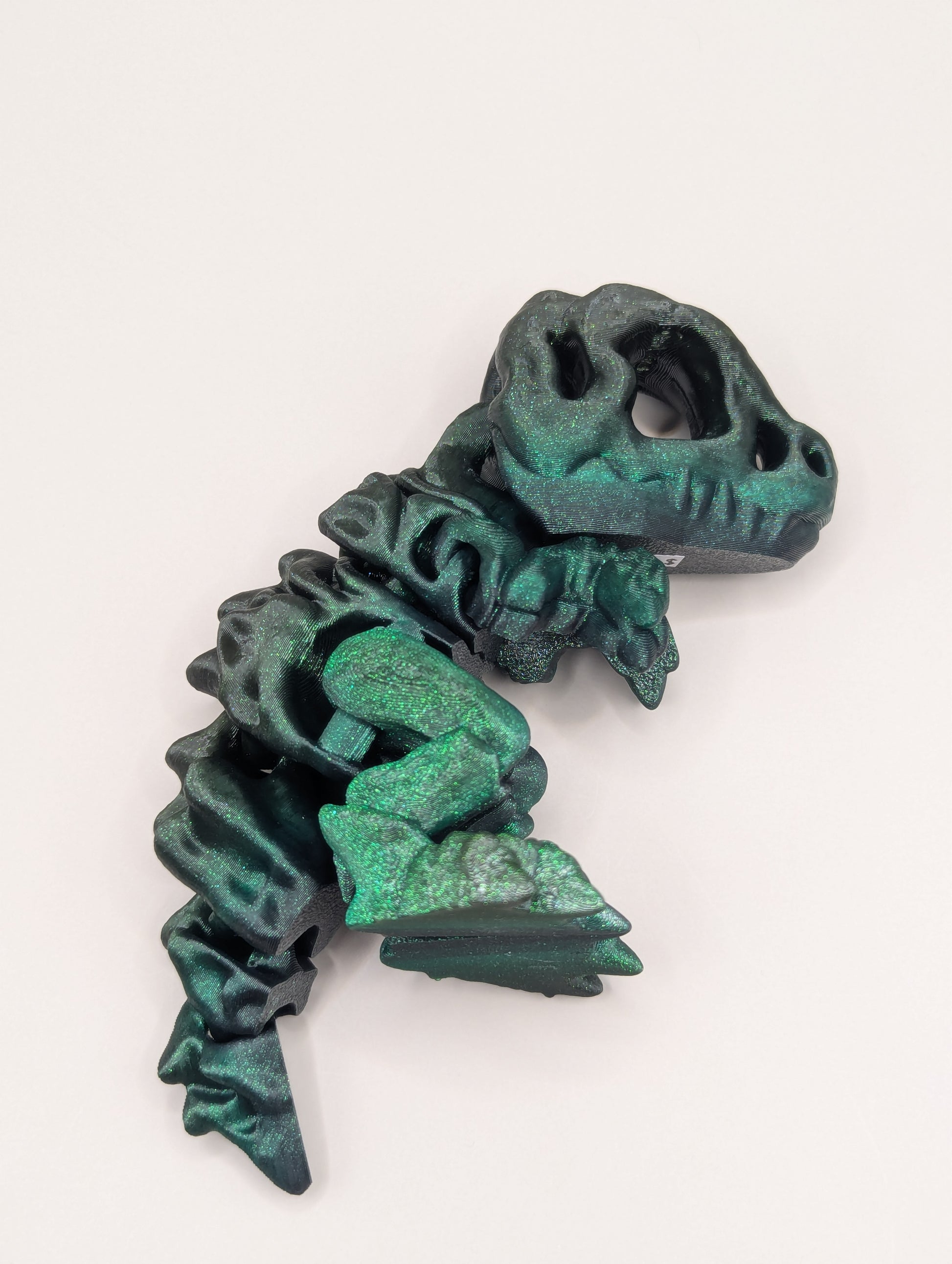 3D printed Skeleton T-Rex in color of choice. These Rexs are 6.5 inches long and printed out of PLA plastic. (See below for details on PLA)
